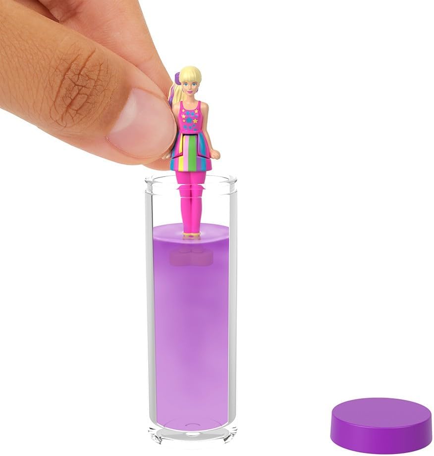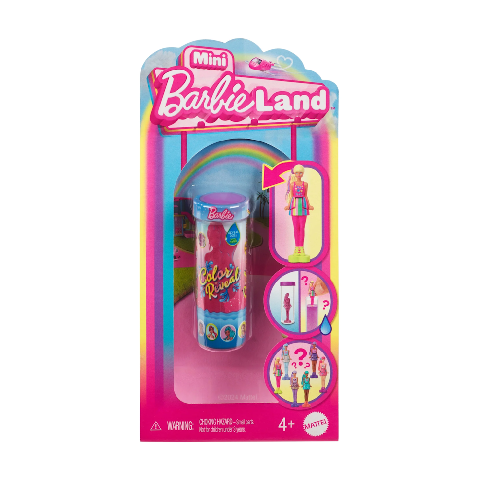Unbox the magic of Barbieland with the Mattel Barbie Color Reveal Dolls! Each doll is hidden inside a mystery tube, waiting to be revealed with warm water activation. Simply fill the tube, swirl your doll inside, and watch as the color transformation unveils a stylish Barbie with a unique outfit and accessories. With multiple dolls to collect, this surprise-packed unboxing experience is perfect for Barbie fans of all ages!