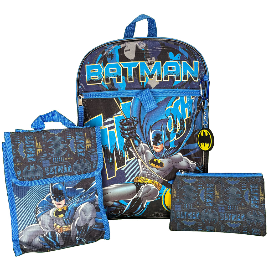 Personalize this school supply set for your kids' to be ready for back to school! Purchase is for a 5 piece set that includes: colorful backpack, lined lunch bag, character keychain, utility case, and metal carabiner connector. Perfect to give as birthday gifts and first day of school! Officially licensed. Backpack includes 1 large zippered compartment, front zipper pocket and side mesh compartments. As well as adjustable padded straps for comfortable carrying. Lunch bag is lined for easy cleaning while keeping your treats stored.