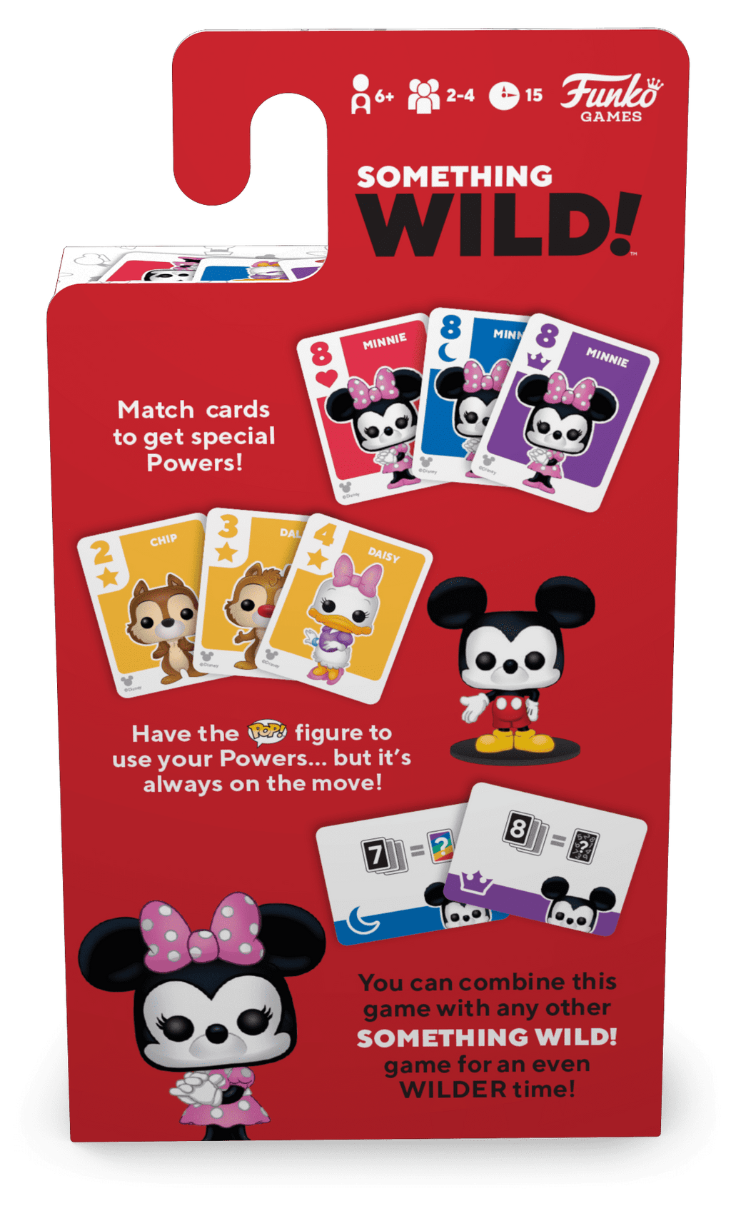 A new line of card games features beloved Disney characters and collectible Pop! pocket figures. Play numbered and colored character cards to make sets and runs. Score a set to snag the character figure’s special power that helps you win! The first player to score three powers wins the game. Combine multiple games to add more character cards, more Pop! figures, and more powers to your game!