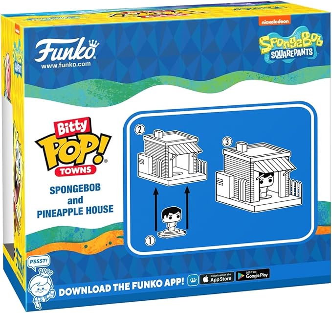Your favorite SpongeBob SquarePants POP! collectibles have been shrunk into Bitty POP! collectibles Expand your collection with Bitty POP! Town SpongeBob and Gary with Pineapple House! Bitty POP! figure is packaged in a hard acrylic display case with a detachable bottom lid. The detachable bottom lid doubles as an acrylic base, to which the Bitty POP! figure is adhered. Remove this exclusive Bitty POP! SpongeBob and Gary from their display case so they can step inside the Bitty POP! Town Pineapple House! Vinyl figures are approximately 0.9 and 2-inches tall. Warning: Choking Hazard. Collectibles are small. Not for children under the age of 3 years old.
