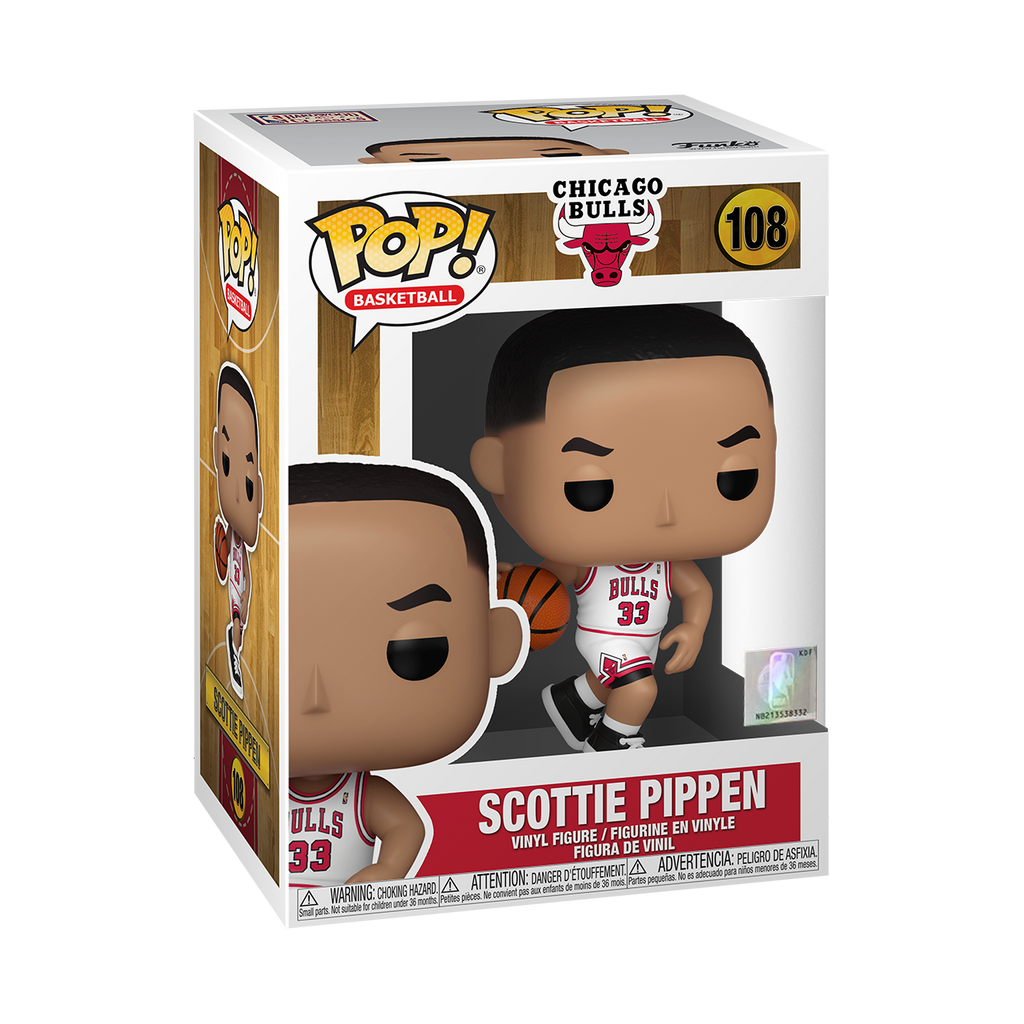 Draft NBA legend Scottie Pippen, small forward for the Chicago Bulls, into your National Basketball Association collection with Pop! Scottie Pippen in his home jersey. Vinyl figure is approximately 4.25-inches tall.