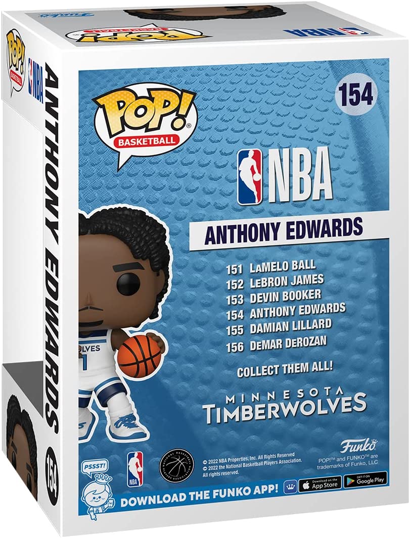 Funko Pop! NBA: Minnesota Timberwolves - Anthony Edwards. Vinyl figure is approximately 4-inches tall. Anthony Edwards in his white home uniform.