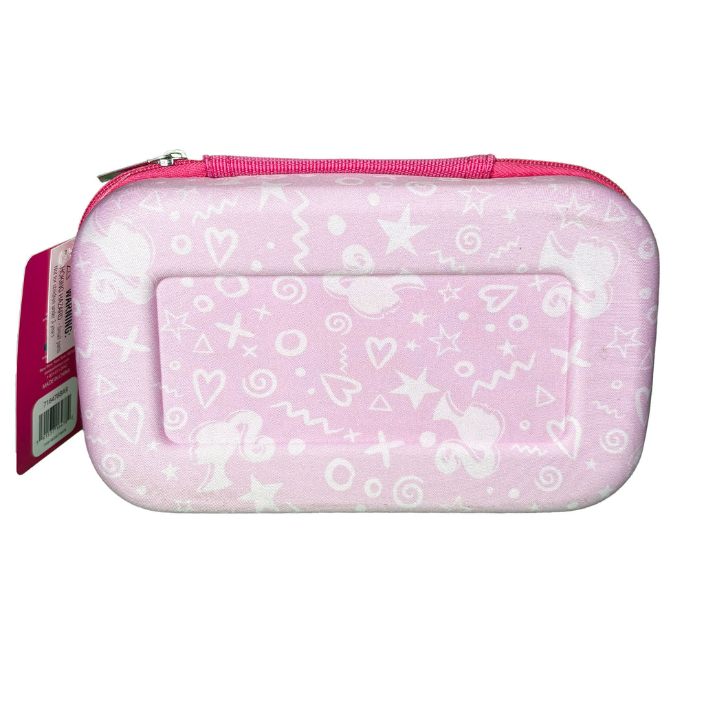 The generous 8x5 inch size holds loads of colored pencils, markers, pens, pencils, crayons - anything kids need to color, write, and draw! Soft to the touch but molded for durability, this pencil holder keeps its shape and protects the contents at the same time. It has a zipper closure for easy opening and closing, and a soft interior. It easily fits into backpacks and desks, and keeps kids organized in kindergarten or elementary school with their favorite characters. Perfect for holding Barbie school supplies and with a Barbie backpack. Barbie Molded Pencil Case 8.5" x 2.5" x 5". Intended for ages 3+.
