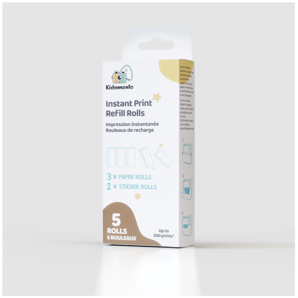 Kidamento Instant Print Kids Camera Original BPA-Free BPS-Free Thermal Printing Paper Roll Refill Set 57mm 2 1/4 Inch Width up to 300 Prints
